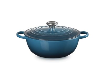 Familierecepten worden van generatie op generatie doorgegeven, net als ons gietijzeren pannen. En deze familiepan is geen uitzondering. Hij is praktisch, stijlvol en gaat lang mee. Afgeronde zijwanden zorgen voor gemakkelijk roeren en een moeiteloze bereiding van eenpansgerechten. Bourguignon? Bouillabaisse? Wij zijn van de partij.