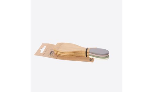 Dit setje van 4 bamboe spatels van Point-Virgule is ideaal voor een gezellige gourmet of raclette. Door de platte zijde kan je gemakkelijk groentjes en vlees keren op de bakplaat zonder krassen te maken of schraap je vlot alle kaas op jouw bord. Met de handige kleuren weet je ook direct welk spateltje van jou is. Bamboe is een voedselveilig en duurzaam materiaal en reinig je het beste met een vochtige doek. Deze spateltjes mogen niet in de vaatwasser. Waarom bamboe? Kiezen voor bamboe is kiezen voor de natuur! Bamboe is immers een onuitputtelijke natuurlijke rijkdom waarvoor geen bomen hoeven te worden omgehakt. Bovendien is het harder en minder poreus dan de meeste hardhoutsoorten en absorbeert het zeer weinig vocht. Bamboe is niet zo gevoelig voor krassen en schrammen van messen als andere houtsoorten waardoor ze beter bestand zijn tegen bacteriën. Hét ideale materiaal dus voor in de keuken en eetkamer! Houd je bamboeproducten schoon met water en wrijf af en toe in met minerale olie om de levensduur te verlengen. Afmeting: 13x3.8x0.4cm |
