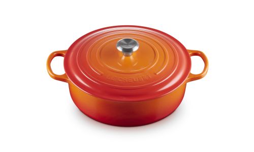 Heerlijke gerechten: de gietijzeren constructie houdt de warmte vast, zodat het eten gelijkmatig kan bakken en bruinen. Uw overheerlijke creaties blijven bovendien langer warm aan tafel.