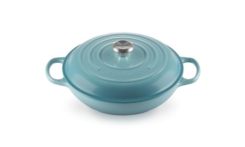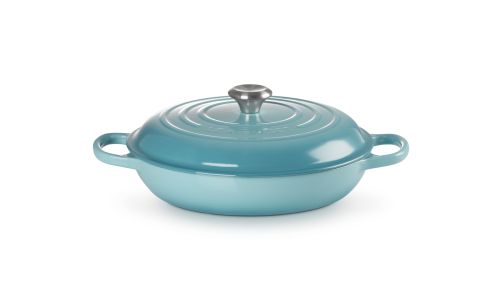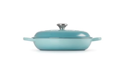 Onze gietijzeren producten zijn gemaakt in onze originele Franse gieterij en zijn een culinaire legende. Deze ondiepe stoofpan vormt daar geen uitzondering op. De grote platte vorm en de lage randen maken hem perfect om vlees en groenten te bruinen, stoofpotten te laten sudderen, te roerbakken en te bakken. Karamelliseren krijgt een extra dimensie, waardoor elke hap naar meer smaakt.