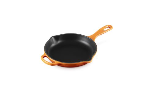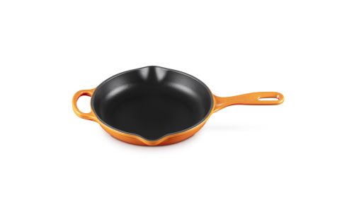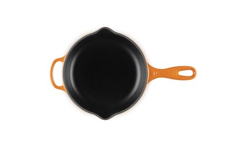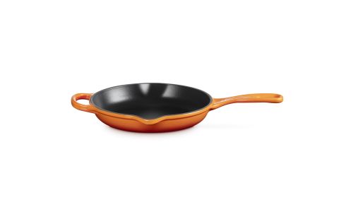 Zowel chef-koks als thuiskoks zweren bij onze karakteristieke skillet. Zijn matzwart geëmailleerde binnenkant brengt karamelliseren naar heerlijke ongekende hoogten. Deze keukenheld kan worden gebruikt op de kookplaat, onder de grill of in de oven, waardoor het een veelzijdig product is om mee te braden en bruin en krokant te bakken.
