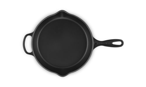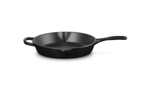 Deze pan is gemaakt van ons legendarische gietijzer, dus hij kan in de oven én op het fornuis worden gebruikt. Het is een echt basisproduct in de keuken en heeft een ergonomisch handvat waardoor hij gemakkelijk te verplaatsen is. En hij is voorzien van twee schenktuitjes, om zonder knoeien te kunnen serveren. Klaar om te serveren? Zet hem dan zo op tafel. U heeft geen extra schaal nodig.