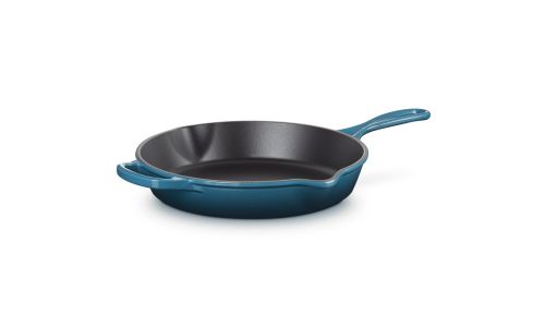 Deze pan is gemaakt van ons legendarische gietijzer, dus hij kan in de oven én op het fornuis worden gebruikt. Het is een echt basisproduct in de keuken en heeft een ergonomisch handvat waardoor hij gemakkelijk te verplaatsen is. En hij is voorzien van twee schenktuitjes, om zonder knoeien te kunnen serveren. Klaar om te serveren? Zet hem dan zo op tafel. U heeft geen extra schaal nodig.