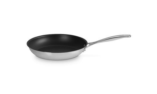 Deze ondiepe koekenpan is gemaakt van glanzend rvs en heeft een speciale drielaagse constructie. Hij warmt snel op en verdeelt de warmte gelijkmatig. Ideaal om elke dag mee te koken, dus. Dankzij de anti-aanbaklaag gaat roeren en omdraaien heel makkelijk en maakt u hem zó weer schoon.