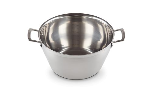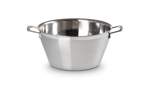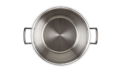 3-laagse techniek: hoogwaardig rvs en aluminium zijn met elkaar verbonden tot een drielaags materiaal dat de warmte gelijkmatig en zacht over de hele pan verspreidt. Het materiaal kenmerkt zich door een snelle, gelijkmatige warmteverdeling en is bijzonder geschikt voor de dagelijkse keuken.