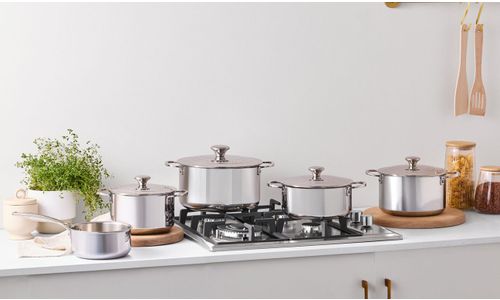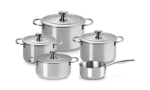 Til uw keuken naar een hoger niveau met deze set met vijf robuuste Signature pannen van RVS. Het brengt de diepe Stoofpannen van Le Creuset van 18cm, 20cm en 24cm, de Stoofpan van 20cm en onze open sauspan van 16cm samen. Deze ongecoate pannen bouwen de warmte snel op en verspreiden de warmte gelijkmatig, voor briljante resultaten.
