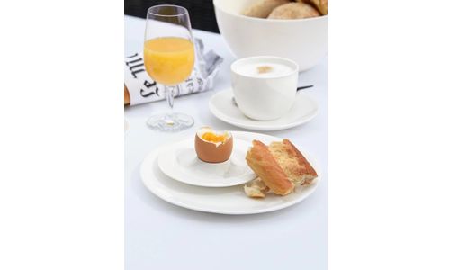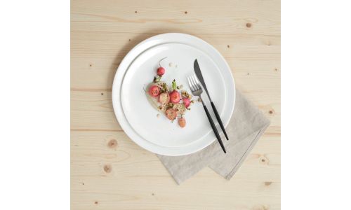 Ontworpen voor elke gelegenheid: “à table” overtuigt door extreme hardheid, warm wit, helder design, pure elegantie en enorme verscheidenheid aan vormen voor een perfect gedekte tafel. De extreme randsterkte en stapelbaarheid maken de schalen ook geschikt voor gebruik in de horeca. Of het nu ovaal, rechthoekig, rond, met of zonder vlag is: voor ieder gerecht is er een passend bord te vinden. Elke bordvorm kan aangevuld worden met bijpassende accessoires zoals juskommetjes, soepkommen etc. Kan gecombineerd worden met “à table ligne noire”.
