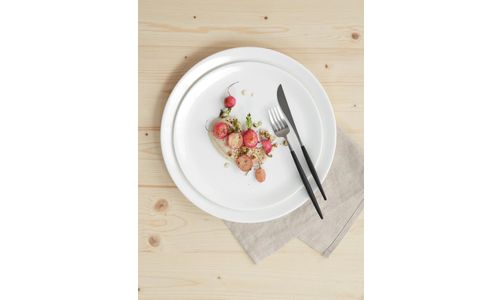 Ontworpen voor elke gelegenheid: “à table” overtuigt door extreme hardheid, warm wit, helder design, pure elegantie en enorme verscheidenheid aan vormen voor een perfect gedekte tafel. De extreme randsterkte en stapelbaarheid maken de schalen ook geschikt voor gebruik in de horeca. Of het nu ovaal, rechthoekig, rond, met of zonder vlag is: voor ieder gerecht is er een passend bord te vinden. Elke bordvorm kan aangevuld worden met bijpassende accessoires zoals juskommetjes, soepkommen etc. Kan gecombineerd worden met “à table ligne noire”.