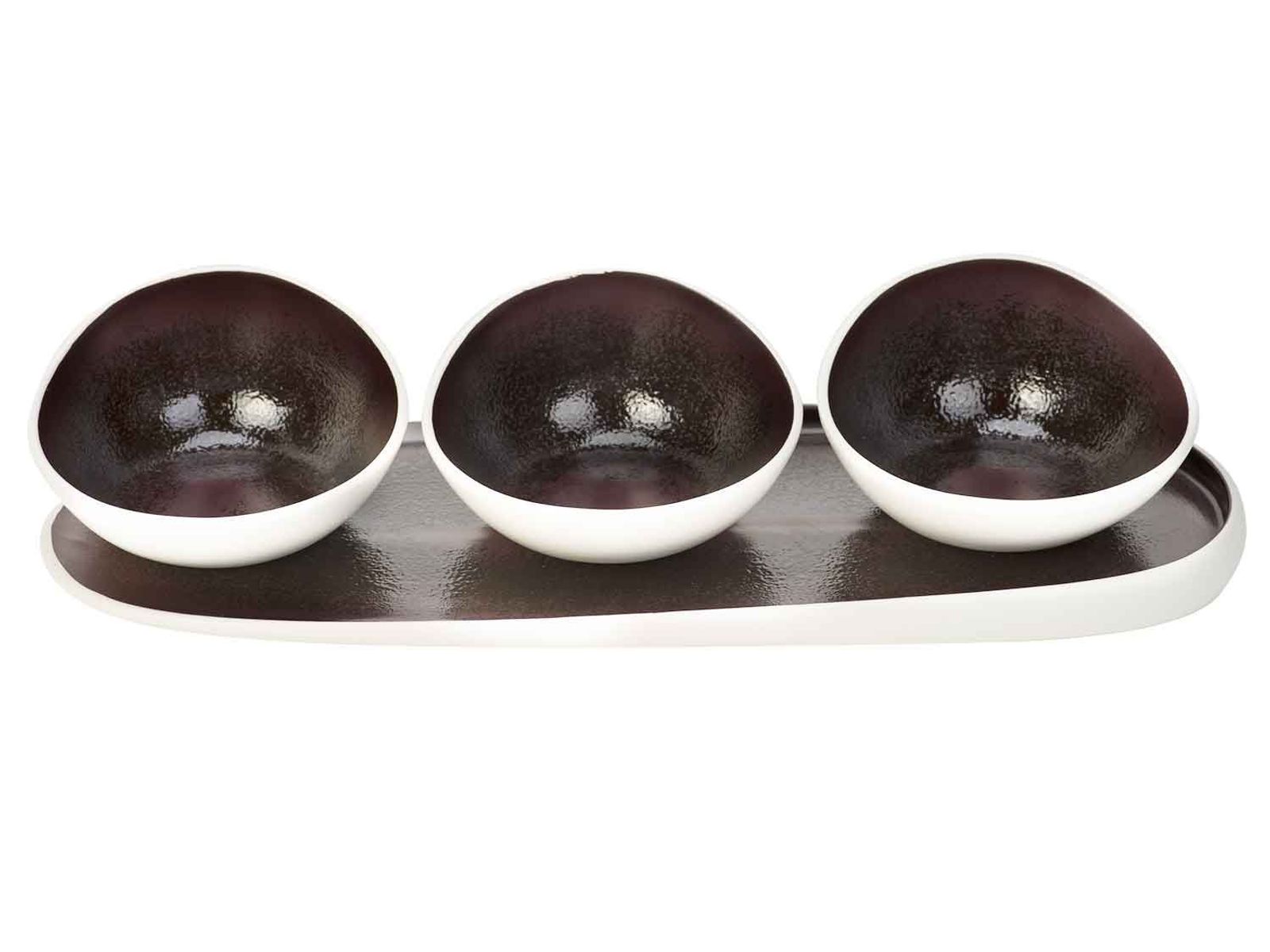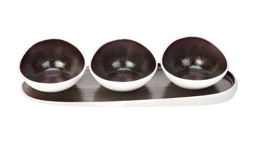 Aubergina Aperoset 4-delig 38,5x14,5cm Bord Met 3 Aperoschaaltjes D12xh7.2cm