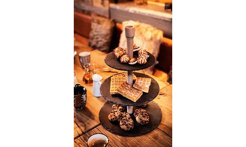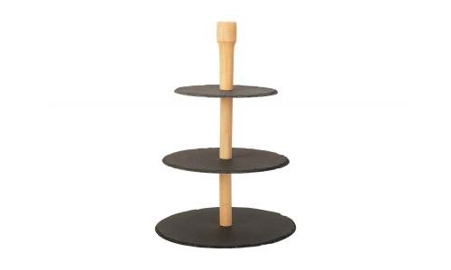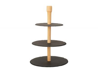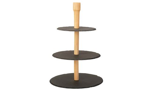 Etagere 3laag Leisteen Rond Houten Stand Incl Tandenstokerhouder