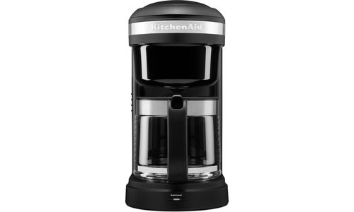 Het KitchenAid filter koffiezetapparaat voor 12 kopjes zet elke keer heerlijke koffie. Dit koffiezetapparaat helpt je de lekkerste koffie te zetten, met precies de juiste smaak en het juiste aroma. Een kop goede koffie zetten was nog nooit zo eenvoudig. De unieke spiraalvormige sproeistraal met 29 openingen trekt gelijkmatig door de gemalen koffie voor optimale extractie en een uitzonderlijk smaakvolle kop koffie. De sterkte is instelbaar dus je kunt kiezen voor een normale of een sterke kop, precies naar jouw smaak. Je hoeft nooit meer te gokken bij het koffiezetten, want de markeringen voor de dosering op het herbruikbare goudkleurige filter en het waterreservoir zorgen elke keer voor hetzelfde smaakvolle resultaat. Het unieke ontwerp van de schenktuit van de glazen kan voorkomt druppelen en morsen voor probleemloos inschenken in kopjes van elke vorm en grootte. Met dit koffiezetapparaat zet je koffie wanneer het jou uitkomt. Dankzij de optie voor automatisch programmeren staat je koffie klaar wanneer jij dat wilt. Dankzij de functie voor schenken met tussenpozen kun je een kop koffie inschenken nog voordat het koffiezetten is voltooid. De handige warmhoudplaat houdt je koffie maximaal 40 minuten warm. Perfect als je 's ochtends wat extra tijd nodig hebt. Het KitchenAid koffiezetapparaat heeft een modern en strak design en is een echte blikvanger op je aanrecht. Combineer het met onze broodrooster uit de Design Collection voor een perfect ontbijtje.