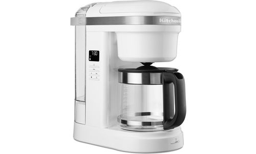Het KitchenAid filter koffiezetapparaat voor 12 kopjes zet elke keer heerlijke koffie. Dit koffiezetapparaat helpt je de lekkerste koffie te zetten, met precies de juiste smaak en het juiste aroma. Een kop goede koffie zetten was nog nooit zo eenvoudig. De unieke spiraalvormige sproeistraal met 29 openingen trekt gelijkmatig door de gemalen koffie voor optimale extractie en een uitzonderlijk smaakvolle kop koffie. De sterkte is instelbaar dus je kunt kiezen voor een normale of een sterke kop, precies naar jouw smaak. Je hoeft nooit meer te gokken bij het koffiezetten, want de markeringen voor de dosering op het herbruikbare goudkleurige filter en het waterreservoir zorgen elke keer voor hetzelfde smaakvolle resultaat. Het unieke ontwerp van de schenktuit van de glazen kan voorkomt druppelen en morsen voor probleemloos inschenken in kopjes van elke vorm en grootte. Met dit koffiezetapparaat zet je koffie wanneer het jou uitkomt. Dankzij de optie voor automatisch programmeren staat je koffie klaar wanneer jij dat wilt. Dankzij de functie voor schenken met tussenpozen kun je een kop koffie inschenken nog voordat het koffiezetten is voltooid. De handige warmhoudplaat houdt je koffie maximaal 40 minuten warm. Perfect als je 's ochtends wat extra tijd nodig hebt. Het KitchenAid koffiezetapparaat heeft een modern en strak design en is een echte blikvanger op je aanrecht. Combineer het met onze broodrooster uit de Design Collection voor een perfect ontbijtje.