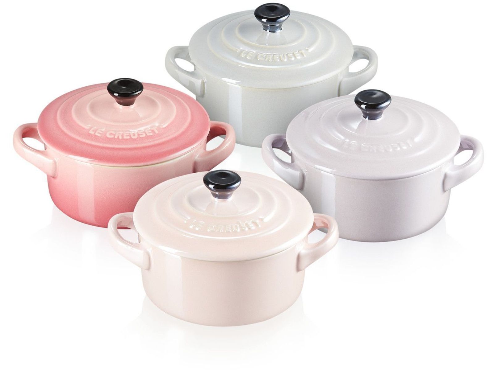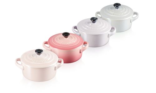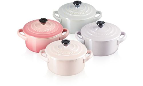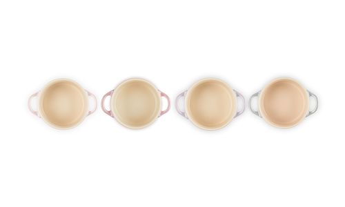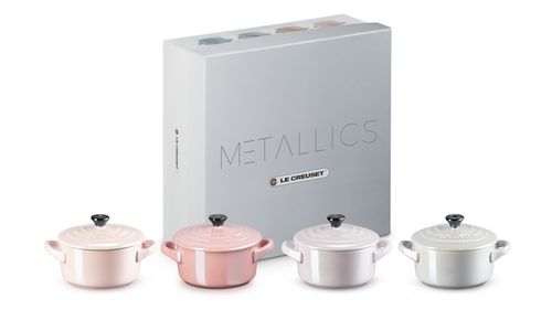 Een prachtige geschenkset, die vier pastelkleurige kleine stoofpannen van aardewerk combineert. Deze schoonheden hebben fraaie kleuren en glimmen dankzij hun unieke, parelmoerachtige glazuur. Een reeks metallic tinten compenseert elkaar perfect. Chiffon pink. Rose quartz. Bluebell purple. Grijze parel. Wat is uw favoriet?