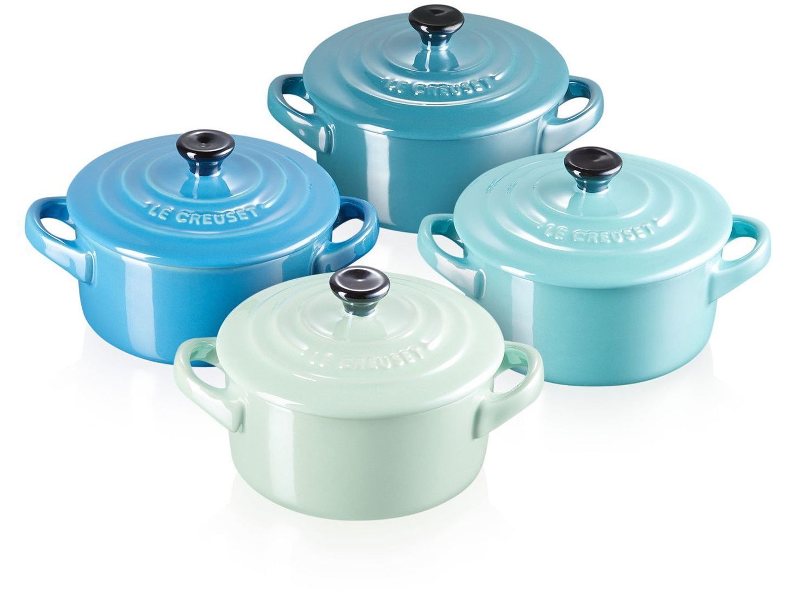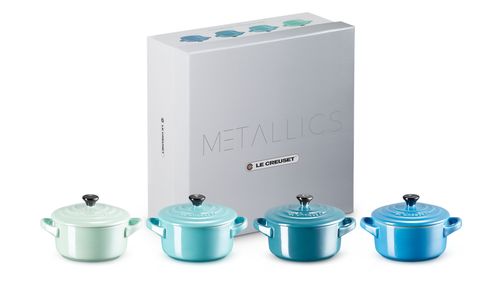 Deze kleine stoofpannen glanzen prachtig, dankzij de unieke parelmoeren glazuur. Deze prachtige geschenkset combineert vier van onze geliefde metallics: Cool mint, caribbean, deep teal en marseille. Deze schattige pannetjes zijn gemaakt van aardewerk en zijn geschikt voor de vaatwasser, oven, magnetron en vriezer.