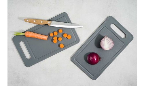 Fresco Snijplank Set2 Grijs 25x14xh,6cm Rechthoek Met Sapgeul Pp