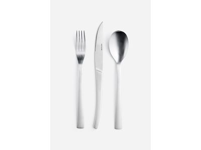 In geborstelde afwerking biedt het Orsay gamma met strakke lijnen en moderne rondingen een bestek dat de elegantie van uw tafel zal benadrukken.