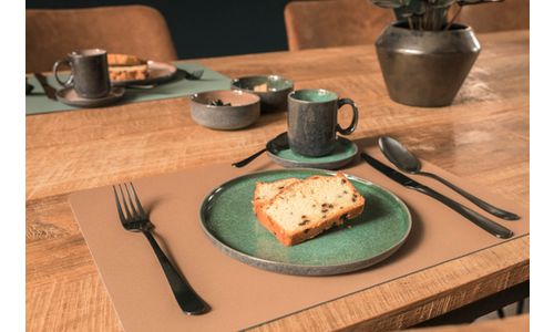 Le service Lerida a vraiment tout ce qu’il vous faut: des bols, des coupelles, des assiettes, des plateaux, des tasses ... dans des formes de base rondes et rectangulaires siimples mais jolies. Cette série est disponible en deux versions: le Meadow, en vert herbe, et le Desert, en brun sable. Tant l’intérieur que l’extérieur de la vaisselle en porcelaine sont finies d’une couche épaisse d’émail brillant, c’est beau et très solide !