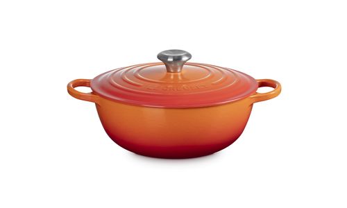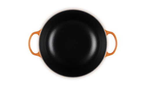 Familierecepten worden van generatie op generatie doorgegeven, net als ons gietijzeren pannen. En deze familiepan is geen uitzondering. Hij is praktisch, stijlvol en gaat lang mee. Afgeronde zijwanden zorgen voor gemakkelijk roeren en een moeiteloze bereiding van eenpansgerechten. Bourguignon? Bouillabaisse? Wij zijn van de partij.