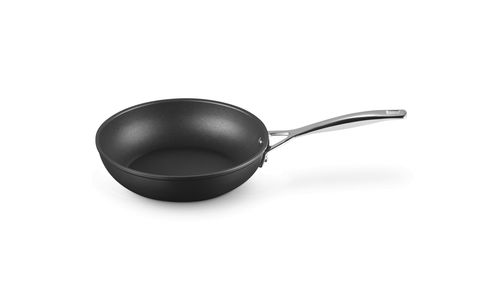 Deze verstevigde diepe koekenpan met anti-aanbaklaag is gebruiksvriendelijk en biedt fantastische resultaten. Dit is het ultieme product voor heerlijke resultaten in de dagelijkse keuken. De hoge randen voorkomen dat uw ingrediënten op het fornuis terechtkomen en maken deze pan ideaal voor het sudderen van sauzen en stoofschotels, maar uiteraard ook om in te bakken. Hij is aan de binnenkant voorzien van onze allerbeste anti-aanbaklaag, waardoor gerechten onmiddellijk loskomen.