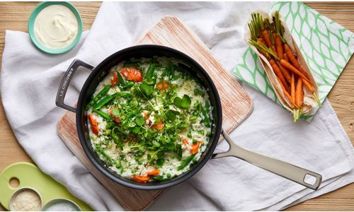 Kies uw kookplaat: Ons kookgerei met anti-aanbaklaag is geschikt voor alle kookplaten en conventionele ovens en is veilig tot 260°C of 220°C (Gasstand 7) bij gebruik met een hittebestendig glazen deksel van Le Creuset. Niet geschikt voor magnetrons.