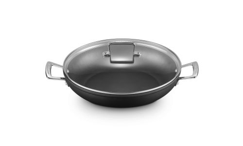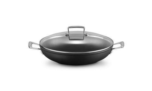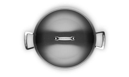 Deze ondiepe stoofpan is voorzien van de beste anti-aanbaklaag ooit van Le Creuset. Hij is duurzaam en bestand tegen uw metalen keukengerei. Hij is ook ideaal voor gezonder koken en het eten komt eenvoudig los, zodat u weinig of geen vet hoeft toe te voegen. Deze pan heeft een glazen deksel die het vocht en de smaak in de pan houdt, zodat uw eten fantastisch smaakt.