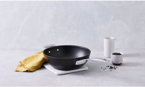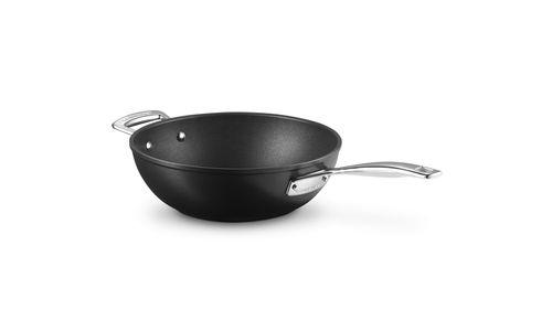 Deze roerbakpan is met zijn diepe gebogen randen en klassieke vorm ideaal voor het bereiden van noedelgerechten, tempura's, chili’s, curry's en nog veel meer. En door onze beste anti-aanbaklaag ooit is hij eenvoudig in gebruik, makkelijk schoon te maken en bestand tegen uw metalen keukengerei. Dankzij de hulpgreep van rvs kunt u hem eenvoudig optillen.