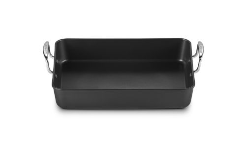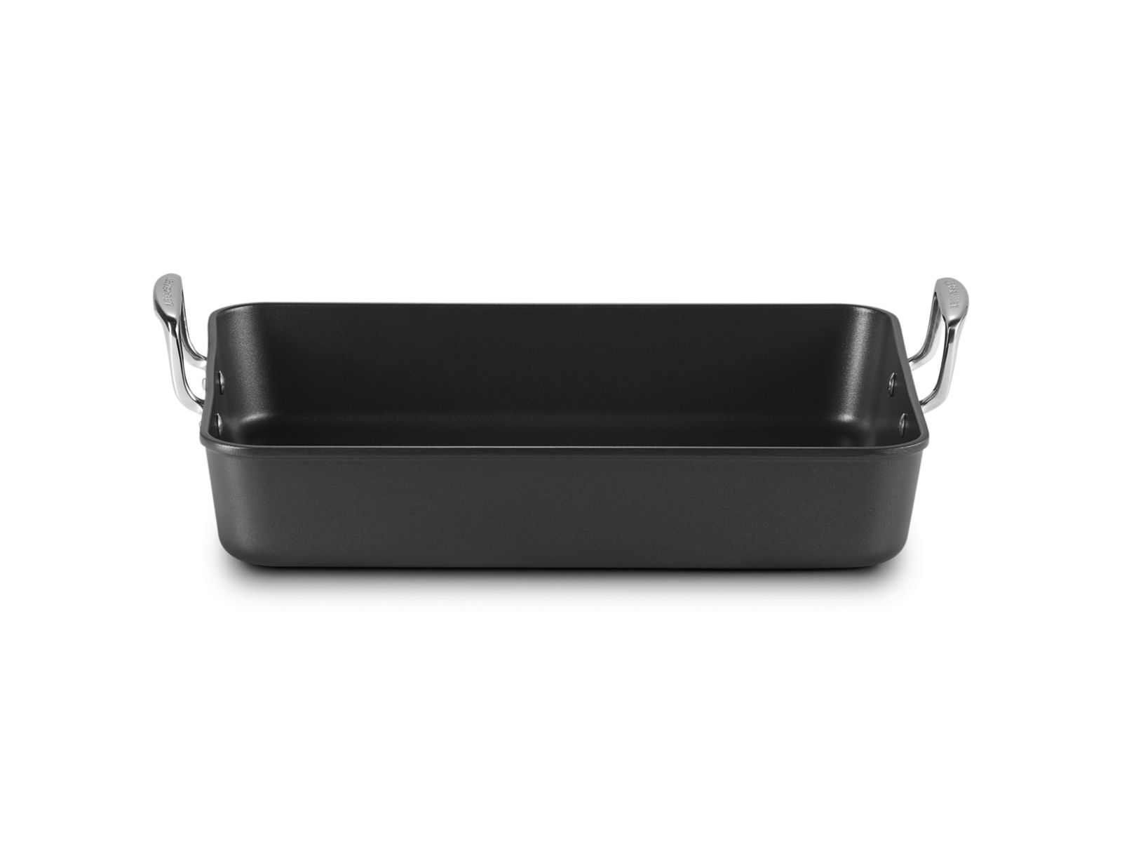 Deze strakke braadslede met geharde anti-aanbaklaag is ideaal voor allerlei soorten gerechten, van decadente zondagse lunches tot doordeweekse diners, en levert uitstekende resultaten bij het roosteren, bakken, pocheren of au bain-marie koken. Dankzij het grote formaat en de ruime rechthoekige vorm kunt u mooie grote porties koken.