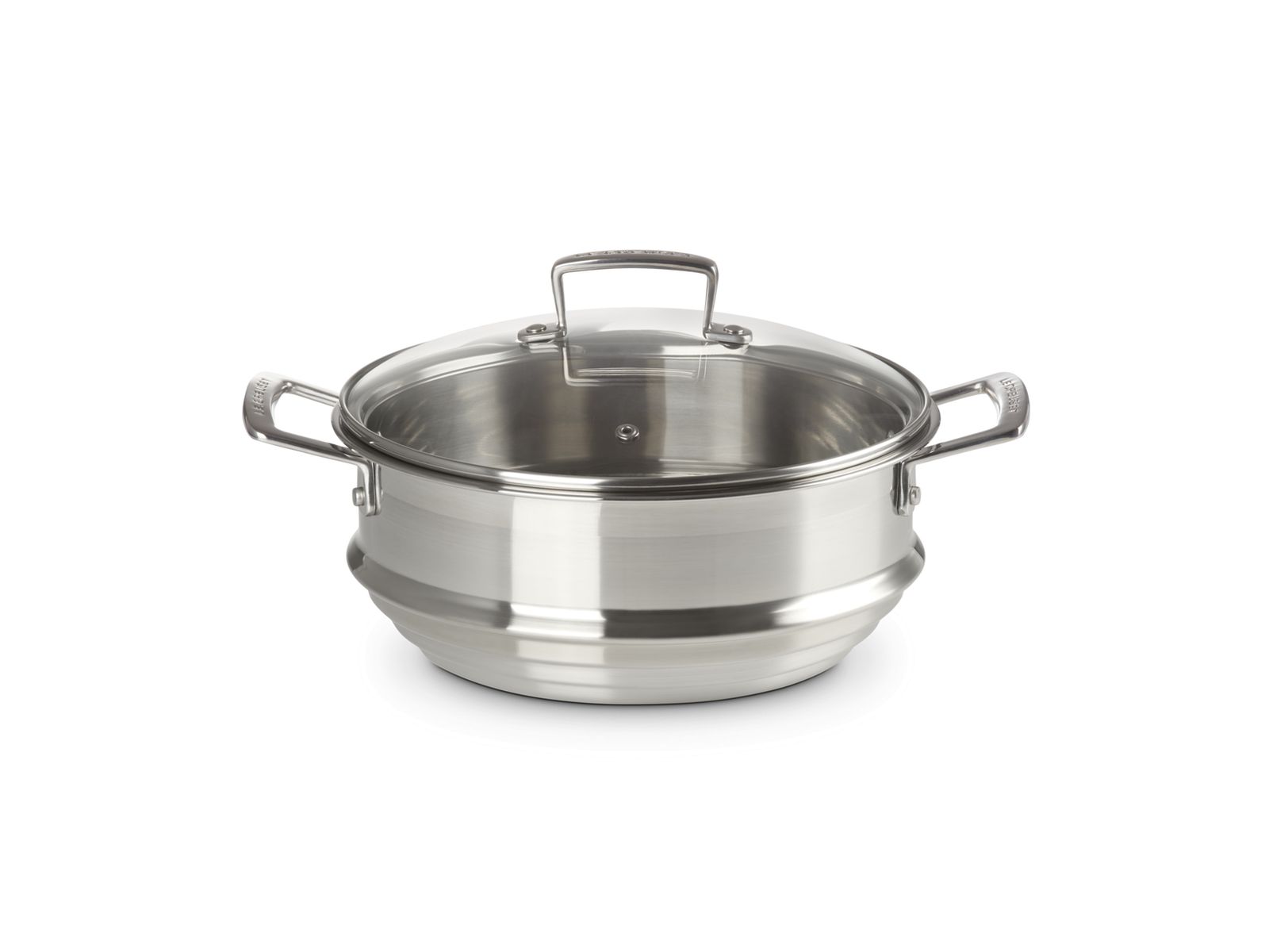 Voeg wat meer pit toe aan uw fornuis met dit multi-stomerinzetstuk van rvs van Le Creuset. Het is precies wat u nodig heeft wanneer u grotere hoeveelheden kookt. Hij is speciaal ontworpen om mooi in alle Le Creuset-pannen met een diameter van 20 cm, 22 cm en 24 cm te passen. De getrapte bodem garandeert multifunctioneel gebruik. Dankzij de twee handgrepen aan de zijkant kan hij, zelfs met ovenhandschoenen, veilig en eenvoudig worden opgetild en verplaatst!