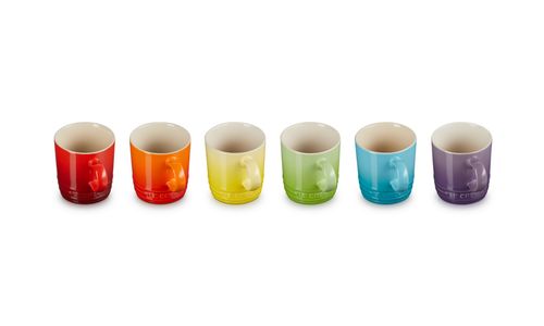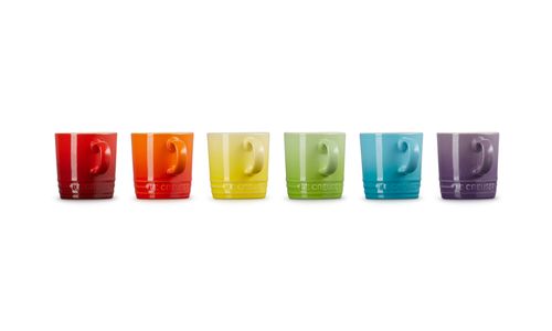 Deze espressomokken hebben een inhoud van 100 ml en zijn ideaal voor het serveren van een smeuïge espresso, of zelfs voor een individuele portie van een heerlijk dessert. Ze zijn geïnspireerd op onze grotere mok en passen perfect bij de rest van uw Le Creuset-collectie. Fleur uw keuken op met deze set van zes of schenk ze aan een vriend(in) om zijn of haar dag weer goed te maken.