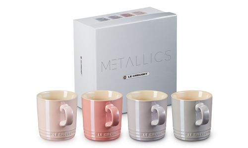 Een opvallende parelmoerglans geeft deze mokken een prachtige gloed. Deze set van vier heeft een vernis gekregen in een aantal prachtige metallic tinten: Chiffon Pink, Rose Quartz, Bluebell Purple en Mist Grey. Deze koppen zijn zowel stevig als stijlvol en kunnen in uw vaatwasser, oven, magnetron en diepvriezer.