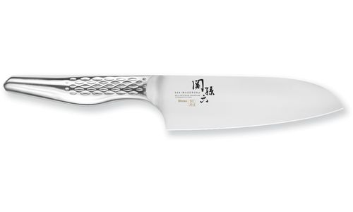 De Seki Magoroku Shoso messen zijn met hun zakelijke, elegante uitstraling een highlight in iedere keuken. Met veel technische expertise worden deze gesmede messen uit roestvrij staal geslepen en gehoond. Het resultaat is een mes met een excellente scherpte, robuustheid en duurzaamheid, en daarmee uitermate geschikt voor dagelijks gebruik in de keuken. De lemmets worden geproduceerd met de modernste technieken, en om frictie aan de snede te verminderen op een laag toerental geslepen. Daardoor is iedere Shoso bijzonder scherp en is de wrijving tussen mes en het snijgoed minimaal. Het ergonomische stalen heft met ruitjespatroon vormt een naadloze overgang naar het mooie gesatineerde lemmet van roestvast staal. De koksmessen zijn in zijn geheel vervaardigd uit staal en daardoor aangenaam licht, veilig te hanteren en uiterst hygiënisch.
