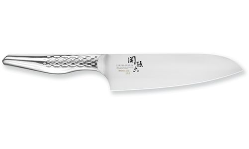 De Seki Magoroku Shoso messen zijn met hun zakelijke, elegante uitstraling een highlight in iedere keuken. Met veel technische expertise worden deze gesmede messen uit roestvrij staal geslepen en gehoond. Het resultaat is een mes met een excellente scherpte, robuustheid en duurzaamheid, en daarmee uitermate geschikt voor dagelijks gebruik in de keuken. De lemmets worden geproduceerd met de modernste technieken, en om frictie aan de snede te verminderen op een laag toerental geslepen. Daardoor is iedere Shoso bijzonder scherp en is de wrijving tussen mes en het snijgoed minimaal. Het ergonomische stalen heft met ruitjespatroon vormt een naadloze overgang naar het mooie gesatineerde lemmet van roestvast staal. De koksmessen zijn in zijn geheel vervaardigd uit staal en daardoor aangenaam licht, veilig te hanteren en uiterst hygiënisch.