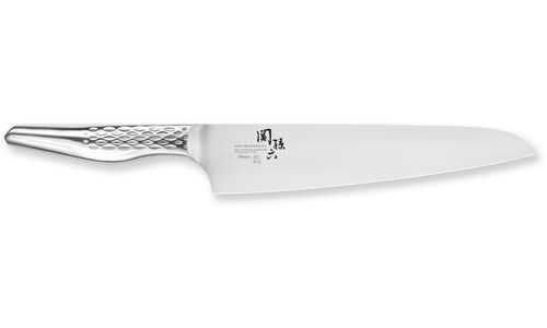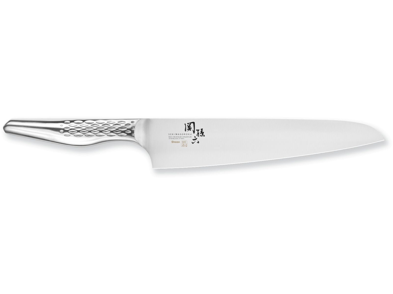 De Seki Magoroku Shoso messen zijn met hun zakelijke, elegante uitstraling een highlight in iedere keuken. Met veel technische expertise worden deze gesmede messen uit roestvrij staal geslepen en gehoond. Het resultaat is een mes met een excellente scherpte, robuustheid en duurzaamheid, en daarmee uitermate geschikt voor dagelijks gebruik in de keuken. De lemmets worden geproduceerd met de modernste technieken, en om frictie aan de snede te verminderen op een laag toerental geslepen. Daardoor is iedere Shoso bijzonder scherp en is de wrijving tussen mes en het snijgoed minimaal. Het ergonomische stalen heft met ruitjespatroon vormt een naadloze overgang naar het mooie gesatineerde lemmet van roestvast staal. De koksmessen zijn in zijn geheel vervaardigd uit staal en daardoor aangenaam licht, veilig te hanteren en uiterst hygiënisch.