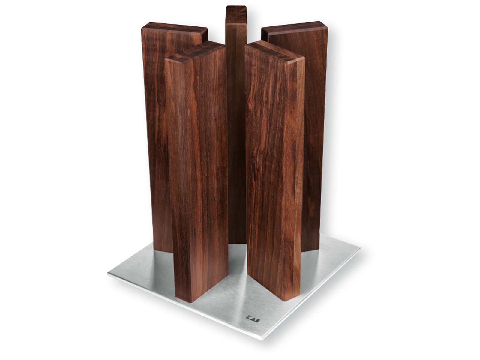 Messenblok Stonehenge Walnotenhout met roestvrij stalen voet | STH-5 magnetisch, voor 10 messen 21,0 x 21,0 x 28,0-30,0 cm L/B/H