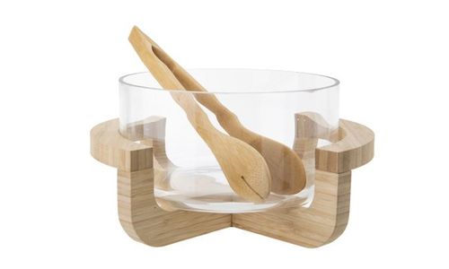 Slakom Glas D23xh10.5cm+houder Hout&tang Houder 29x23xh10cm - Tang L30x5cm