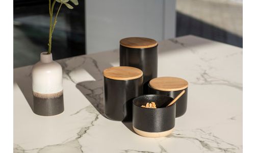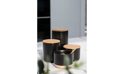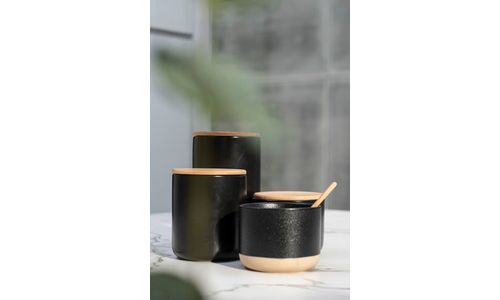 Aperopotje Zwart D10xh17cm Keramiek + De Ksel Bamboe