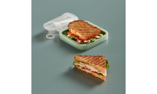 Sandwich lunchbox uit silicone en kunststof groen 18.1x18.1x4.6cm