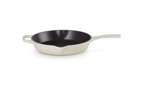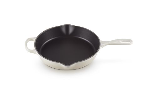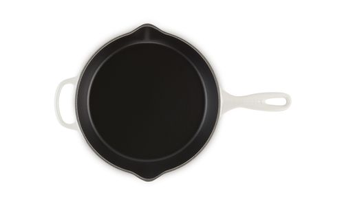 Deze pan is gemaakt van ons legendarische gietijzer, dus hij kan in de oven én op het fornuis worden gebruikt. Het is een echt basisproduct in de keuken en heeft een ergonomisch handvat waardoor hij gemakkelijk te verplaatsen is. En hij is voorzien van twee schenktuitjes, om zonder knoeien te kunnen serveren. Klaar om te serveren? Zet hem dan zo op tafel. U heeft geen extra schaal nodig.