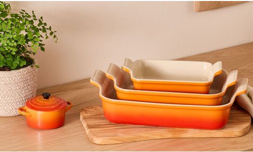 Deze ovenschaal van aardewerk is een onmisbare keukenbenodigdheid. Zijn rechthoekige vorm maakt hem geschikt voor allerlei soorten ingrediënten, waardoor hij uiterst veelzijdig is om dagelijks mee te roosteren, bakken, marineren en serveren. Dankzij de eenvoudig te hanteren geschulpte handgrepen kunt u hem veilig en moeiteloos verplaatsen en de diepe zijwanden bieden u veel kookruimte.