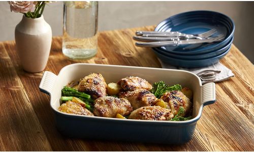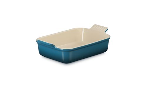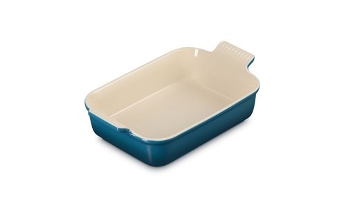Deze ovenschaal van aardewerk is een onmisbare keukenbenodigdheid. Zijn rechthoekige vorm maakt hem geschikt voor allerlei soorten ingrediënten, waardoor hij uiterst veelzijdig is om dagelijks mee te roosteren, bakken, marineren en serveren. Dankzij de eenvoudig te hanteren geschulpte handgrepen kunt u hem veilig en moeiteloos verplaatsen en de diepe zijwanden bieden u veel kookruimte.