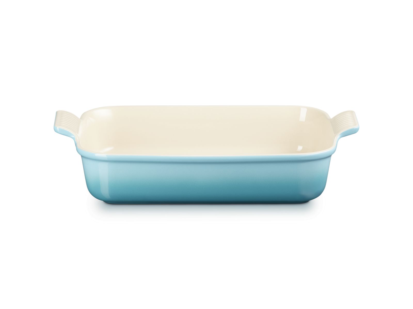 Deze ovenschaal van aardewerk is een onmisbare keukenbenodigdheid. Zijn rechthoekige vorm maakt hem geschikt voor allerlei soorten ingrediënten, waardoor hij uiterst veelzijdig is om dagelijks mee te roosteren, bakken, marineren en serveren. Dankzij de eenvoudig te hanteren geschulpte handgrepen kunt u hem veilig en moeiteloos verplaatsen en de diepe zijwanden bieden u veel kookruimte.