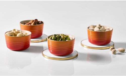 Trakteer uzelf of een bijzonder iemand op deze schattige set met vier mini ramekins. Ideaal voor dips, sauzen en hapjes, elke ramekin is gemaakt van het hoogwaardige aardewerk van Le Creuset.