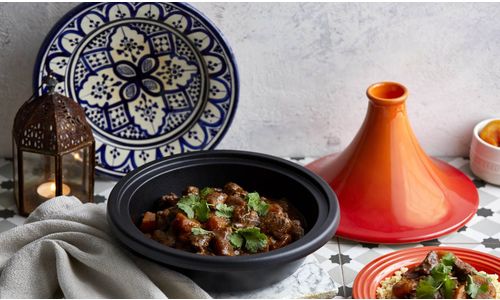 Onze gietijzeren tajine is perfect om een Marokkaans feest op te vrolijken, maar daar houdt het niet bij op. Gebruik hem om vlees of groenten langzaam, in elke gewenste stijl en met een klein beetje vocht, te koken. De gietijzeren bodem kookt het voedsel gelijkmatig, terwijl het deksel van aardewerk stoom vasthoudt zodat er condens wordt gevormd. De condens zorgt ervoor dat de ingrediënten extra mals en smaakvol worden.