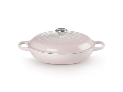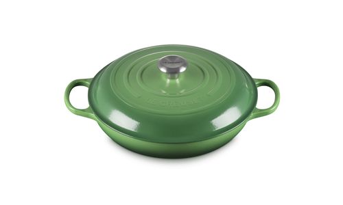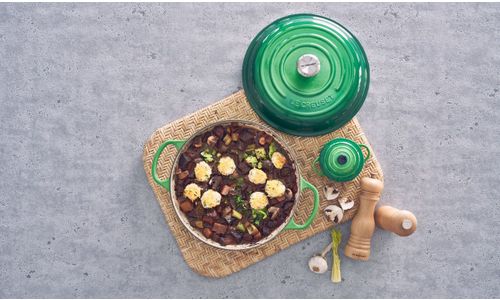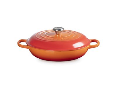 Onze gietijzeren producten zijn gemaakt in onze originele Franse gieterij en zijn een culinaire legende. Deze ondiepe stoofpan vormt daar geen uitzondering op. De grote platte vorm en de lage randen maken hem perfect om vlees en groenten te bruinen, stoofpotten te laten sudderen, te roerbakken en te bakken. Karamelliseren krijgt een extra dimensie, waardoor elke hap naar meer smaakt.