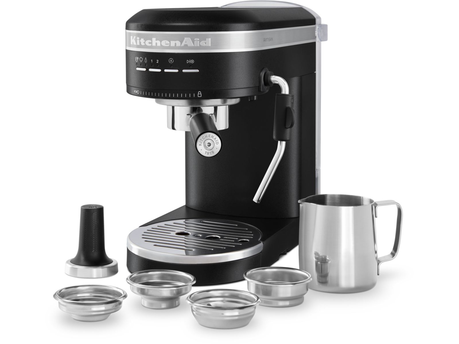 - Stoompijpje voor het opschuimen en verwarmen van de melk