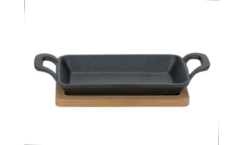 Gietijzer Tapasschaal 22.5x10xh5cm Rechthoek - Op Bamboe Plank - Kraft Box