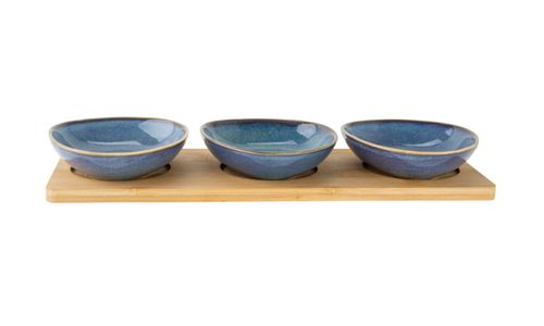 Serveerplank 31x11xh4cm Bamboe + 3 Bo Wls Keramiek Blauw Kp - Kraft Box