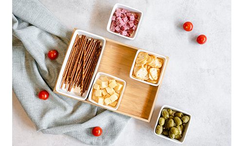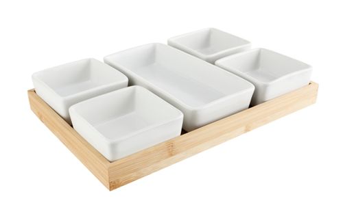 Aperoplankje Met 5 Cups Keramiek 28,4x19,4xh3,8cm Bamboe