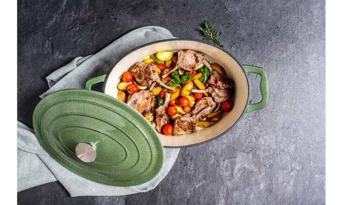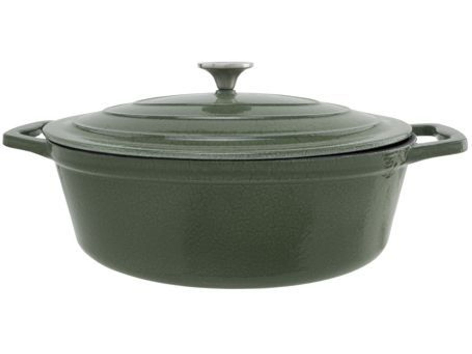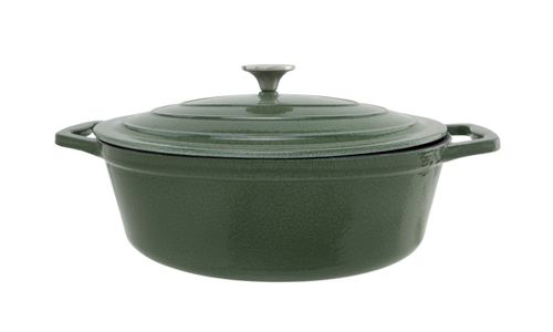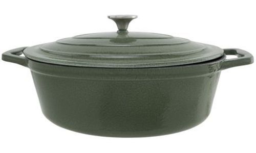 CASTARD KOOKPOT GLANSGROEN5,1L 33X25XH11CM OVAAL GIETIJZER