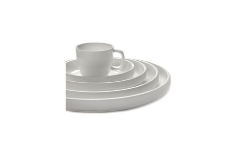 Dankzij de strakke, neutrale vormgeving en de uitgekiende opstaande randen van de Vincent Van Duysenborden en -kommen kan je ontelbaar veel combinaties maken. De geglazuurde binnenzijde in gebroken wit en de witte of zwarte afwerking aan de buitenzijde zorgen daarbij steeds voor een bijzonder contrast.